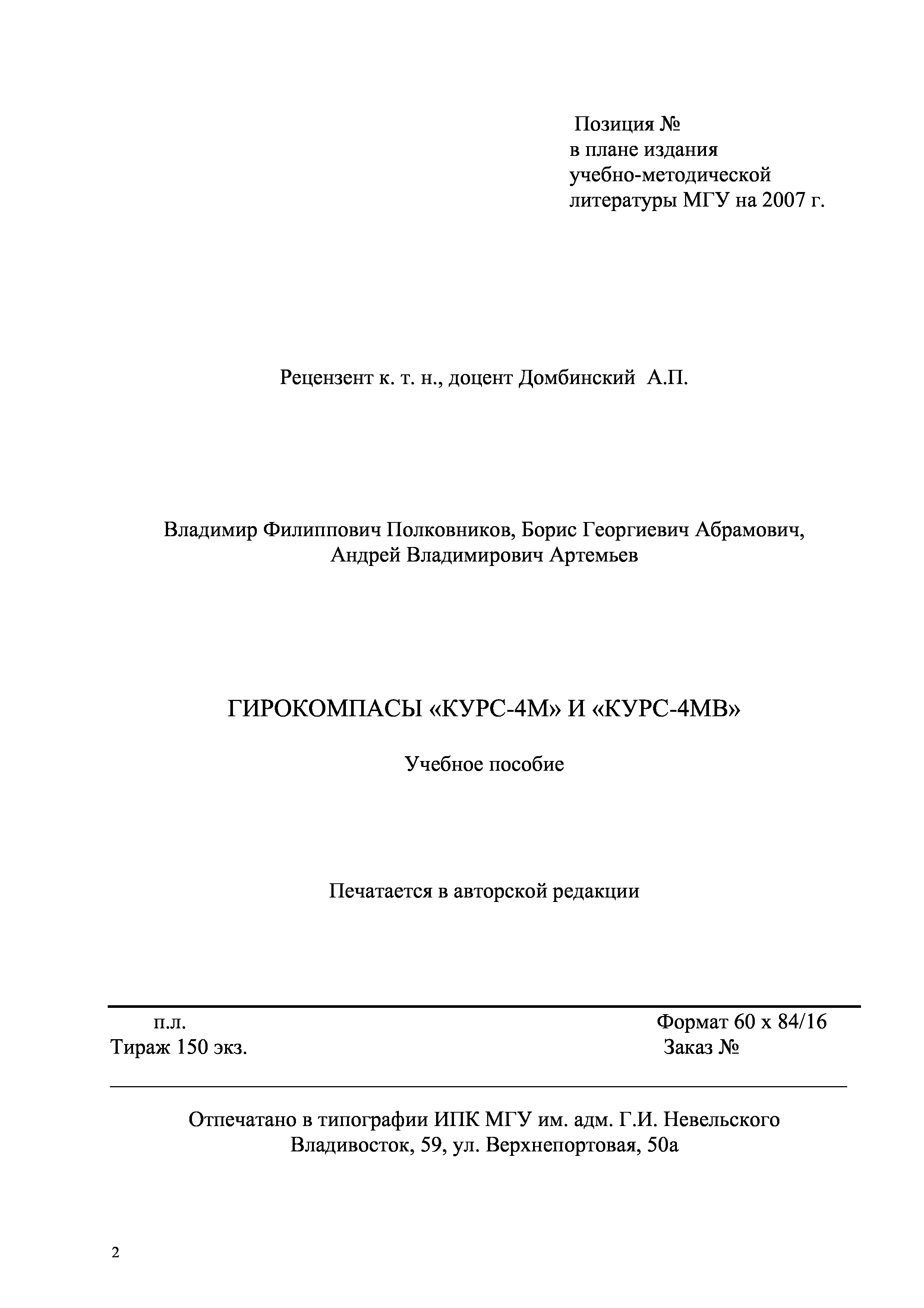 "Гирокомпасы ''Курс-4М'' и ''Курс-4МВ'': Учебное пособие" - читать интересную книгу автора (Полковников В.Ф., Абрамович Б.Г., Артемьев...)