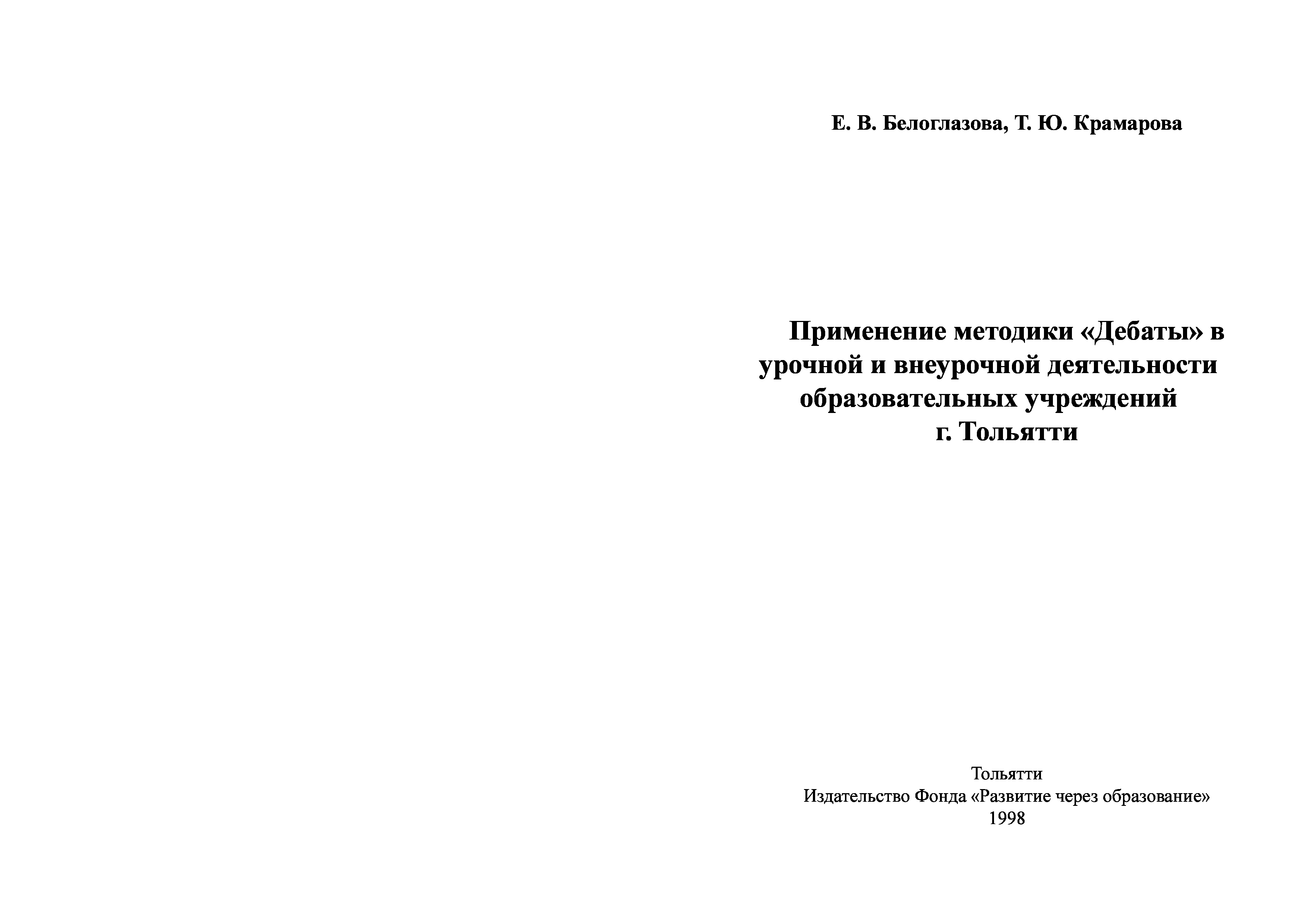 "Применение методики ''Дебаты'' в урочной и внеурочной деятельности образовательных учреждений г. Тольятти" - читать интересную книгу автора