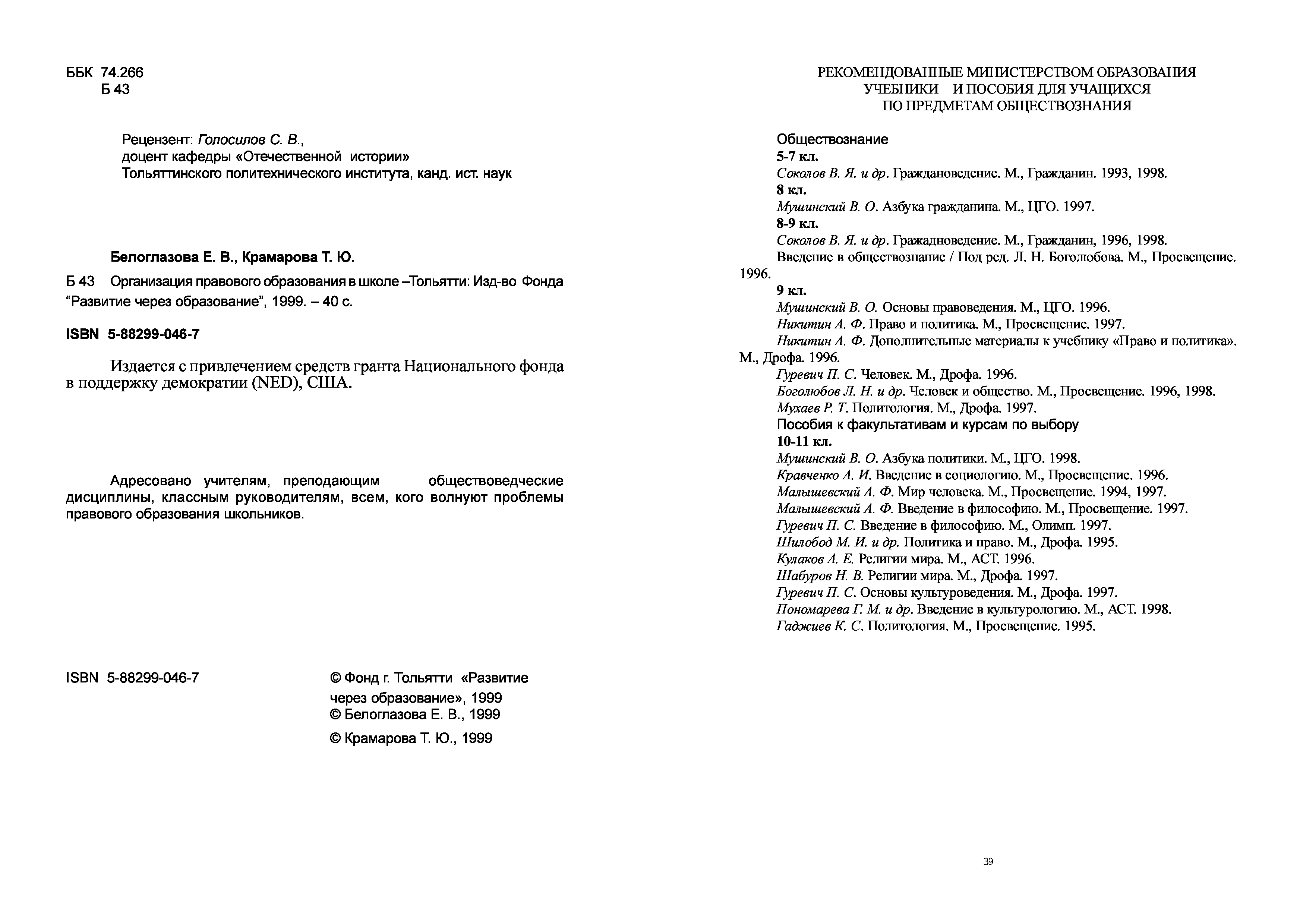 "Организация правового пространства в школе" - читать интересную книгу автора (Белоглазова Е.В., Крамарова Т.Ю.)