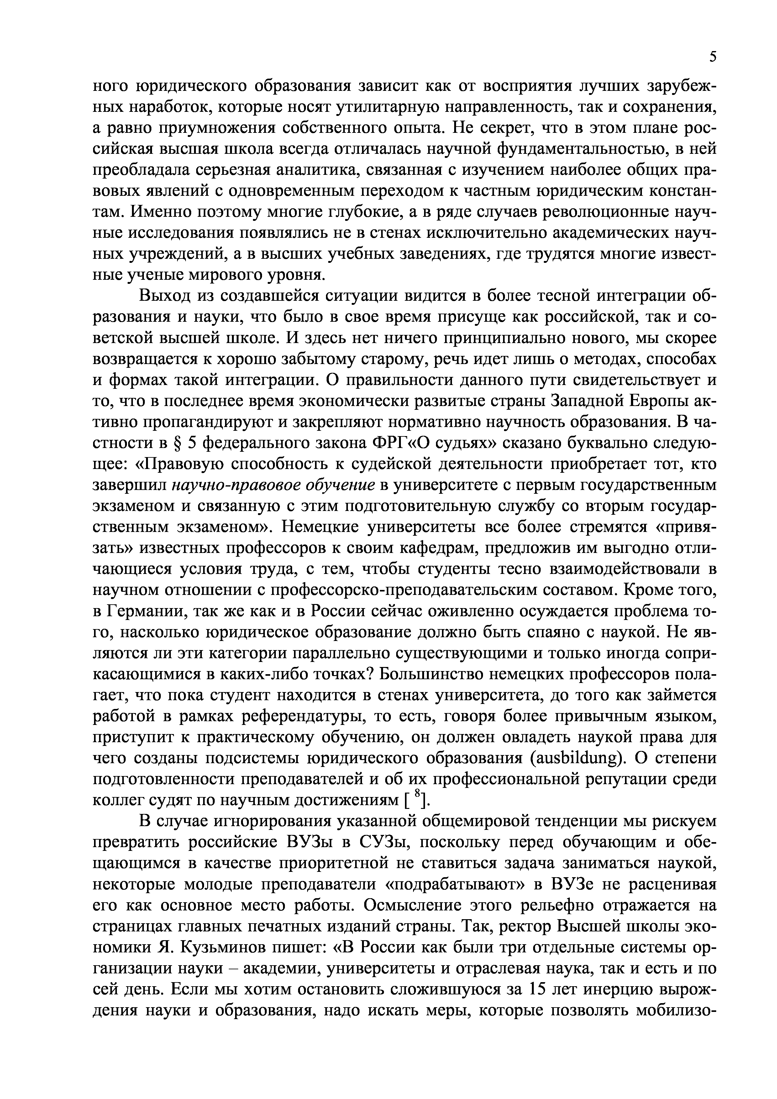 "Интеграция юридического образования и науки как основное направление российской образовательной политики" - читать интересную книгу автора