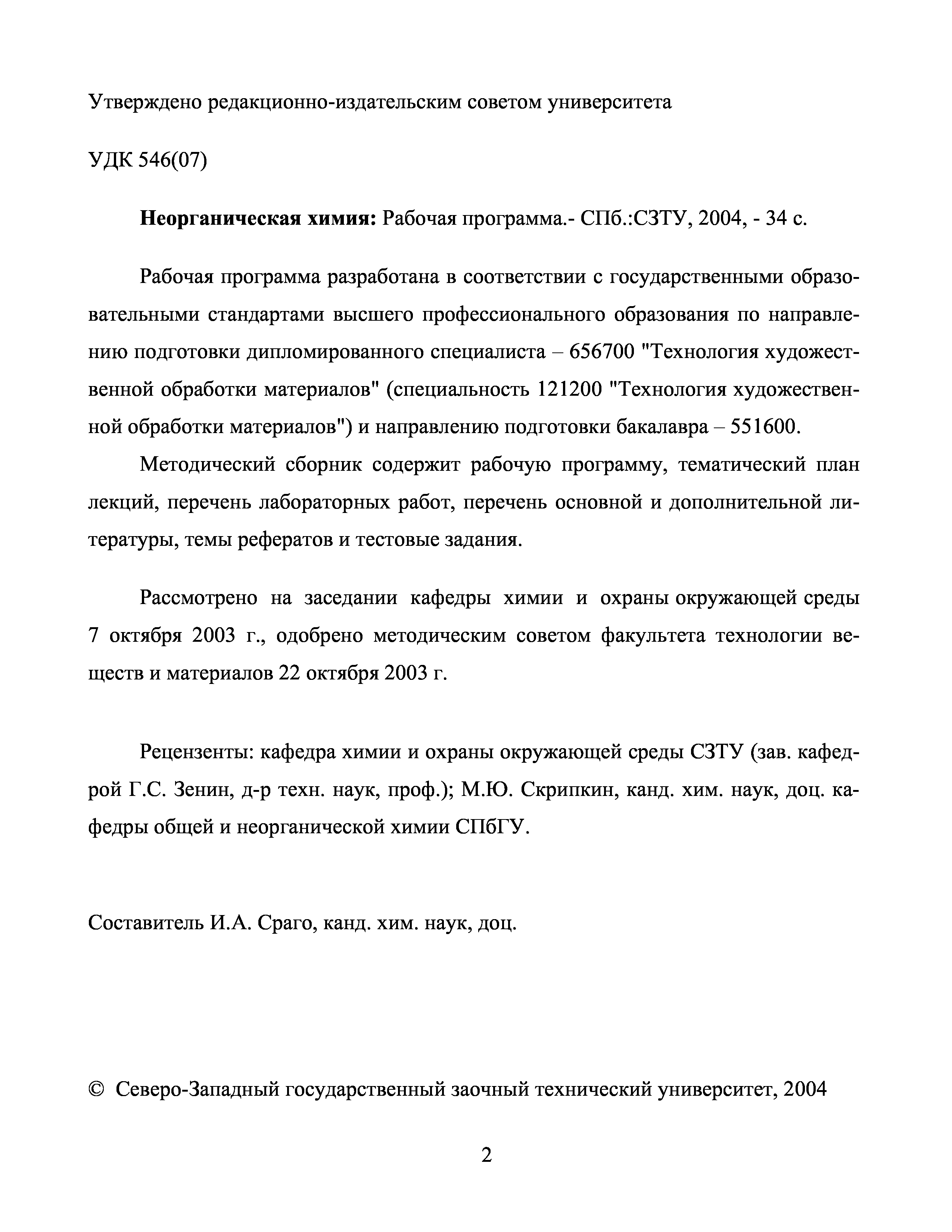 "Неорганическая химия: Рабочая программа" - читать интересную книгу автора