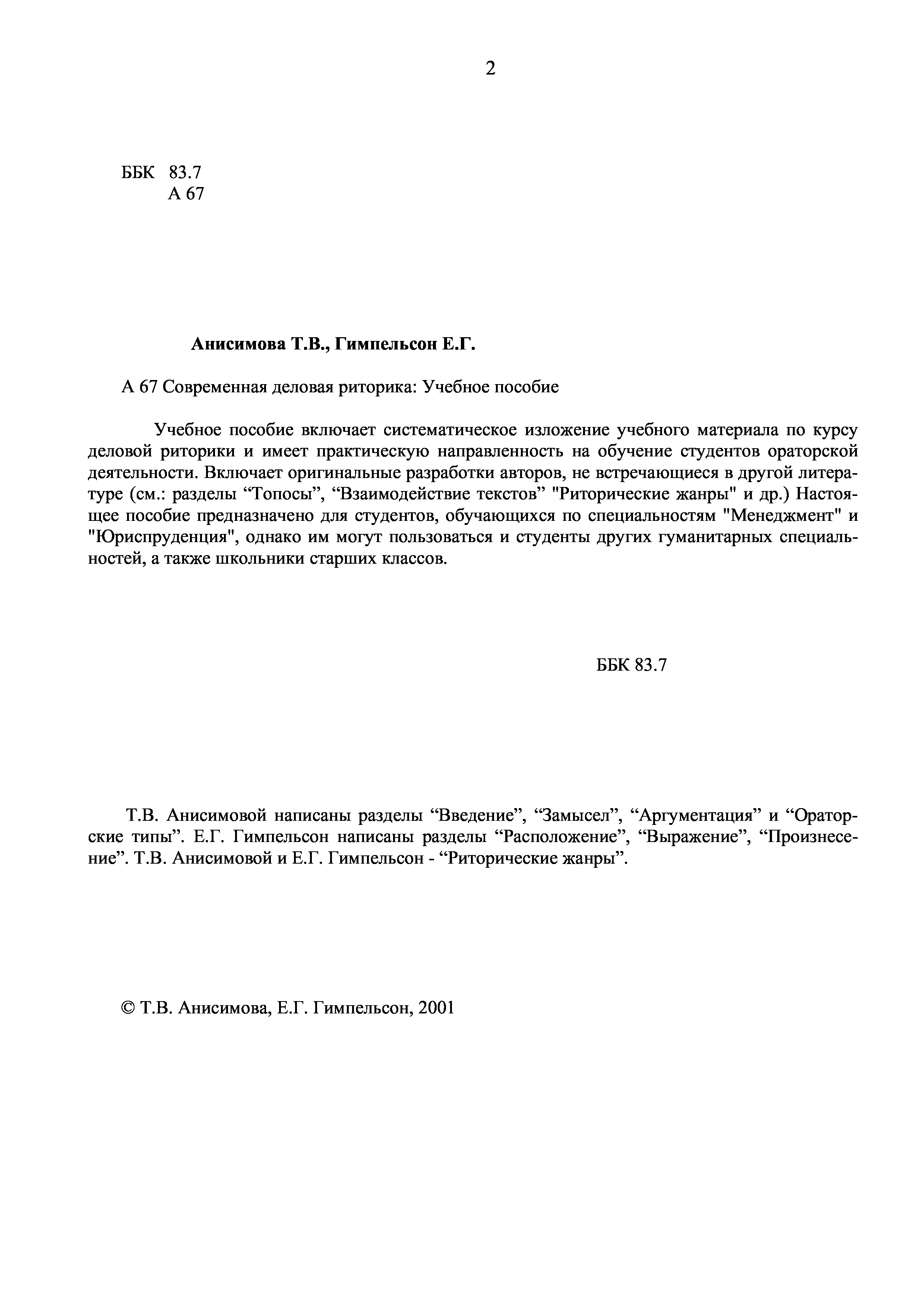 (Анисимова Т.В., Гимпельсон Е.Г.)