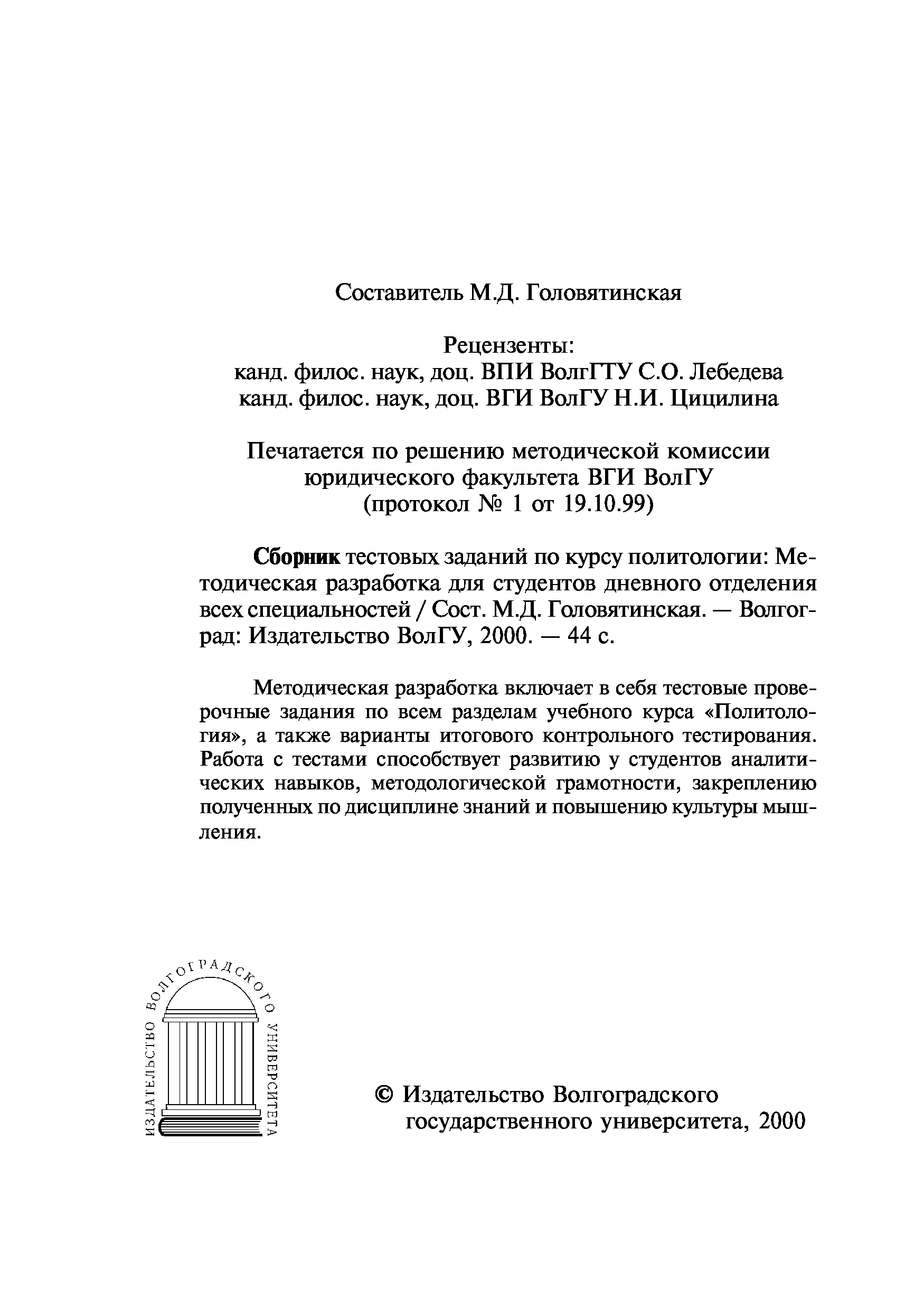"Сборник тестовых заданий по курсу политологии: Методическая разработка" - читать интересную книгу автора