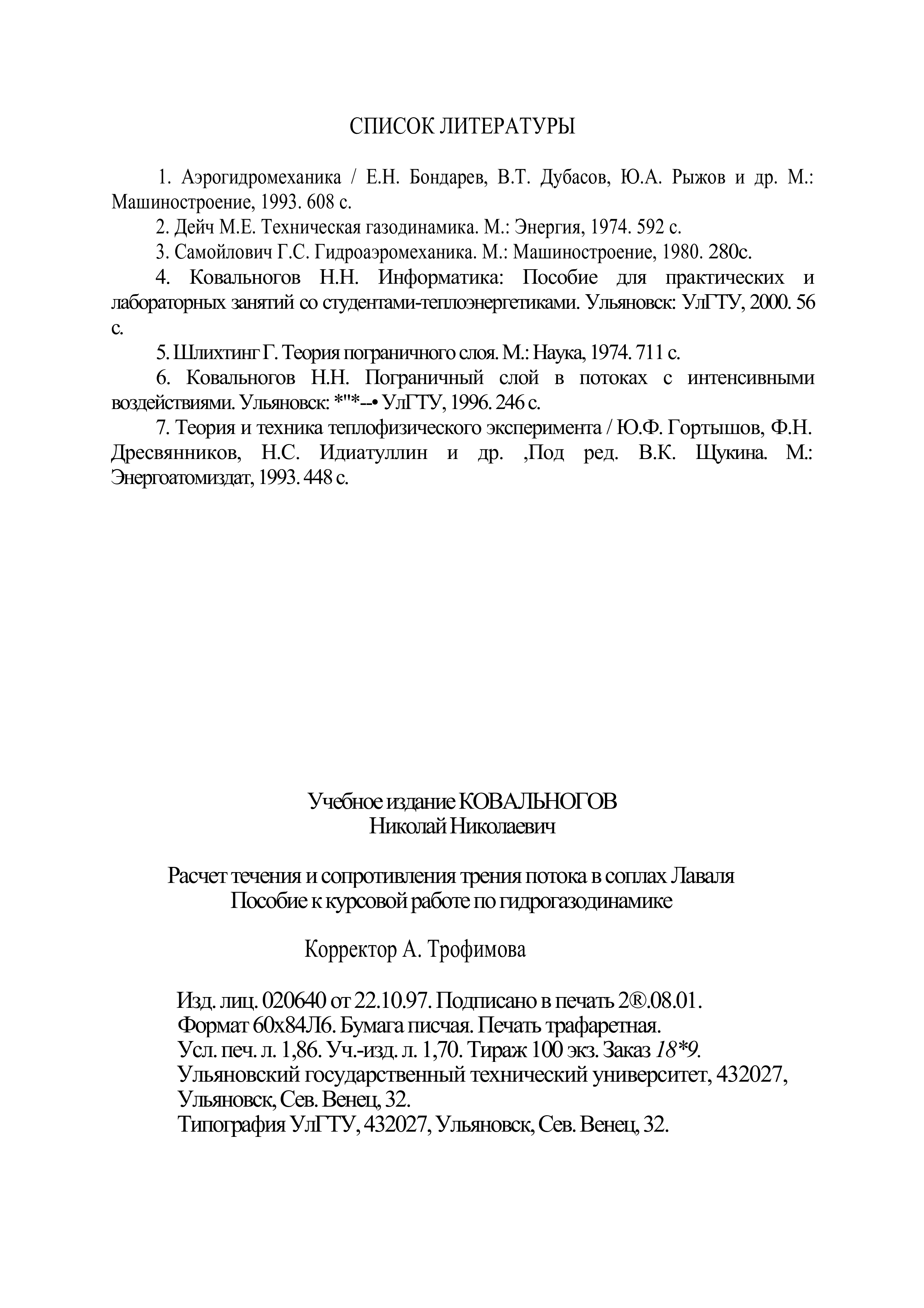 "Расчет течения и сопротивления трения потока в соплах Лаваля: Пособие к курсовой работе по гидрогазодинамике" - читать интересную книгу автора (Ковальногов Н.Н.)