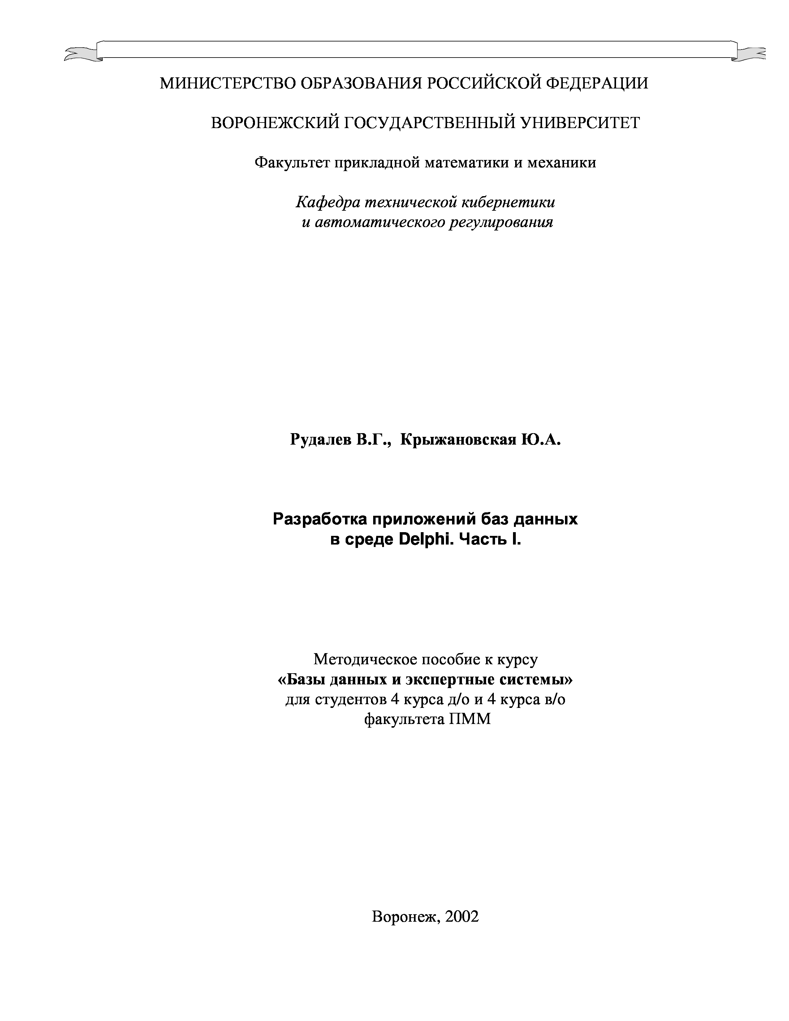 (Рудалев В.Г., Крыжановская Ю.А.)