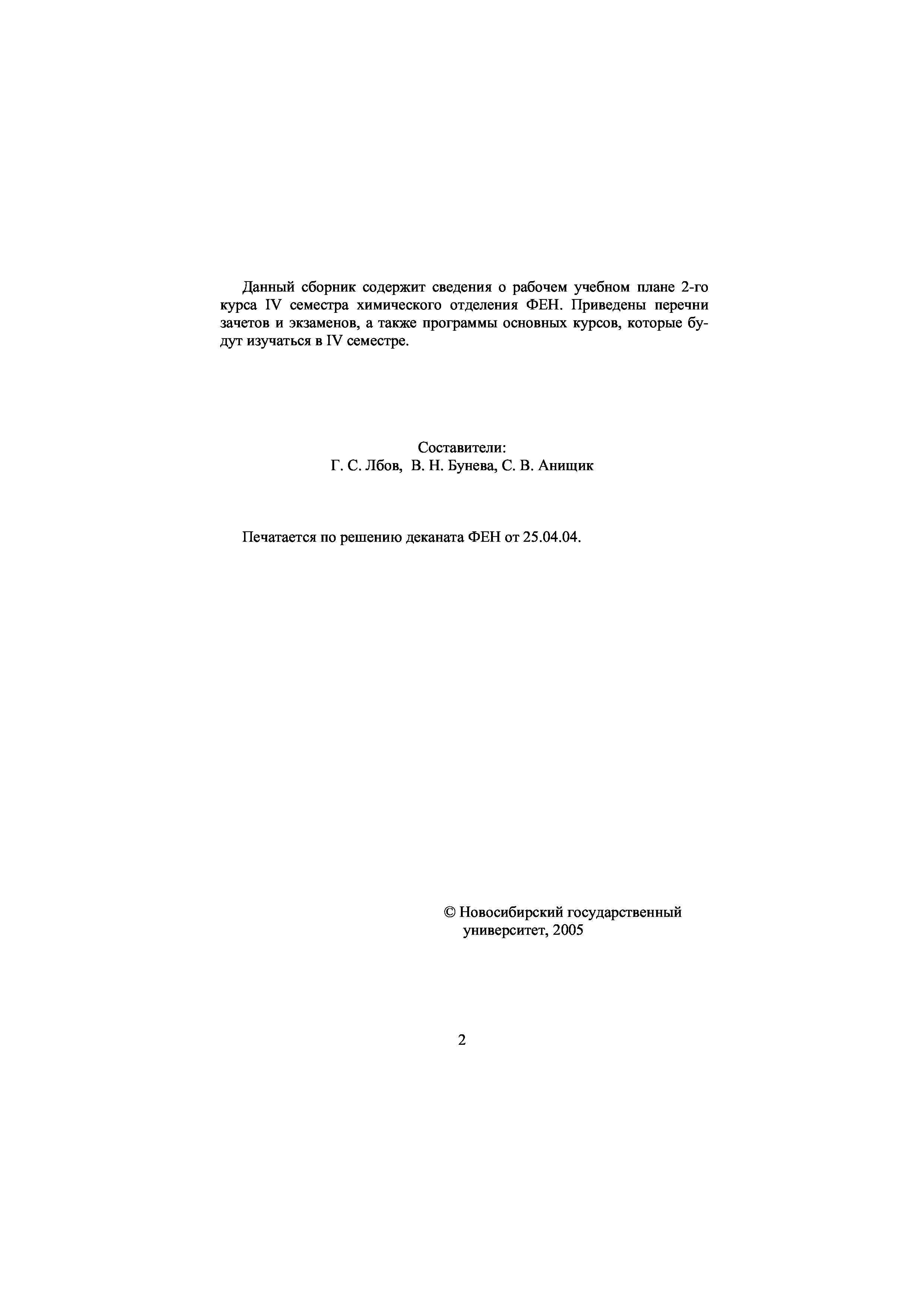 "Программы и задания факультета естественных наук по специальности ''Химия'': 2-й курс, IV семестр" - читать интересную книгу автора (Лбов Г.С., Бунева В.Н., Анищик С.В.)