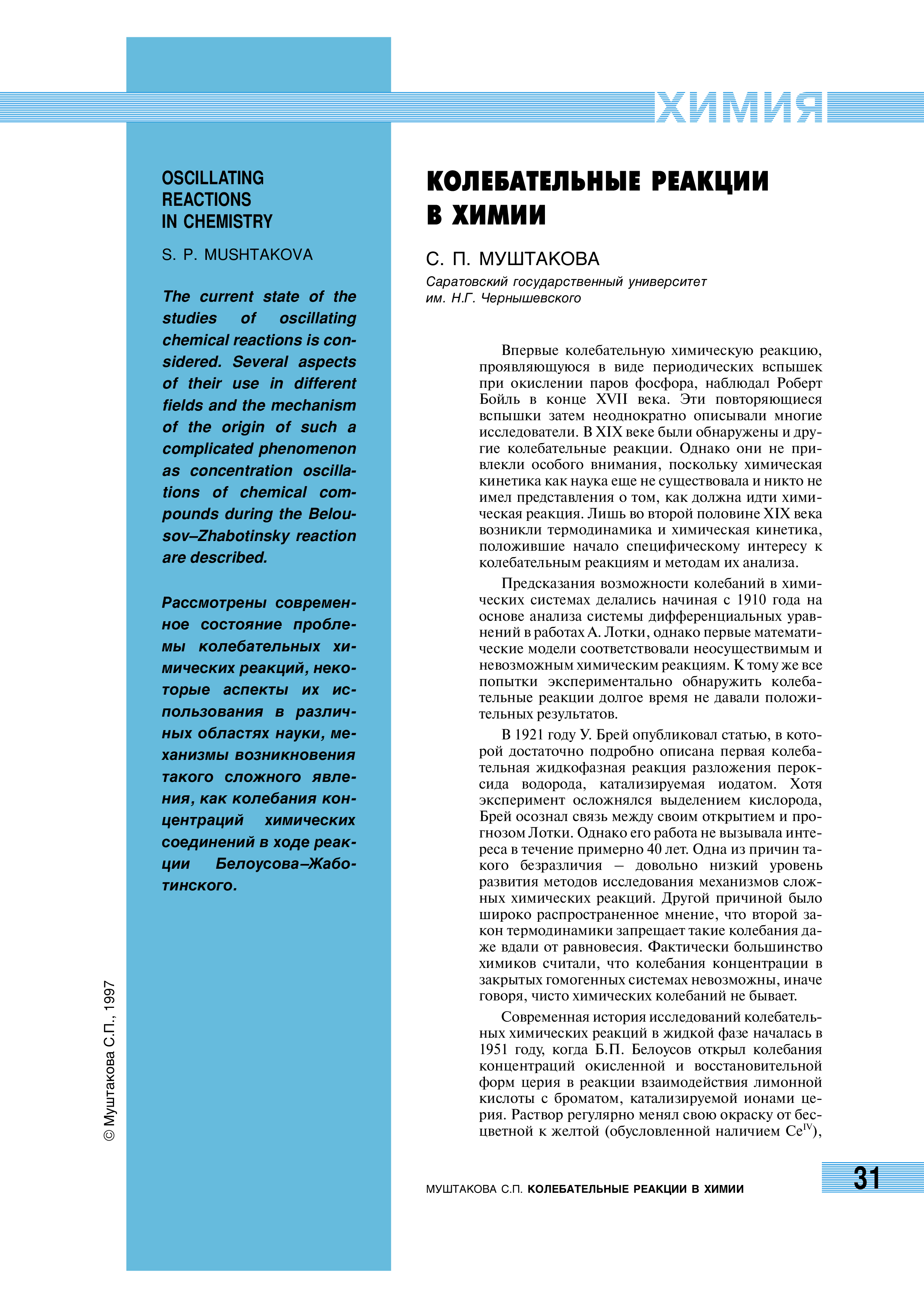 "Колебательные реакции в химии" - читать интересную книгу автора (Муштакова С.П.)