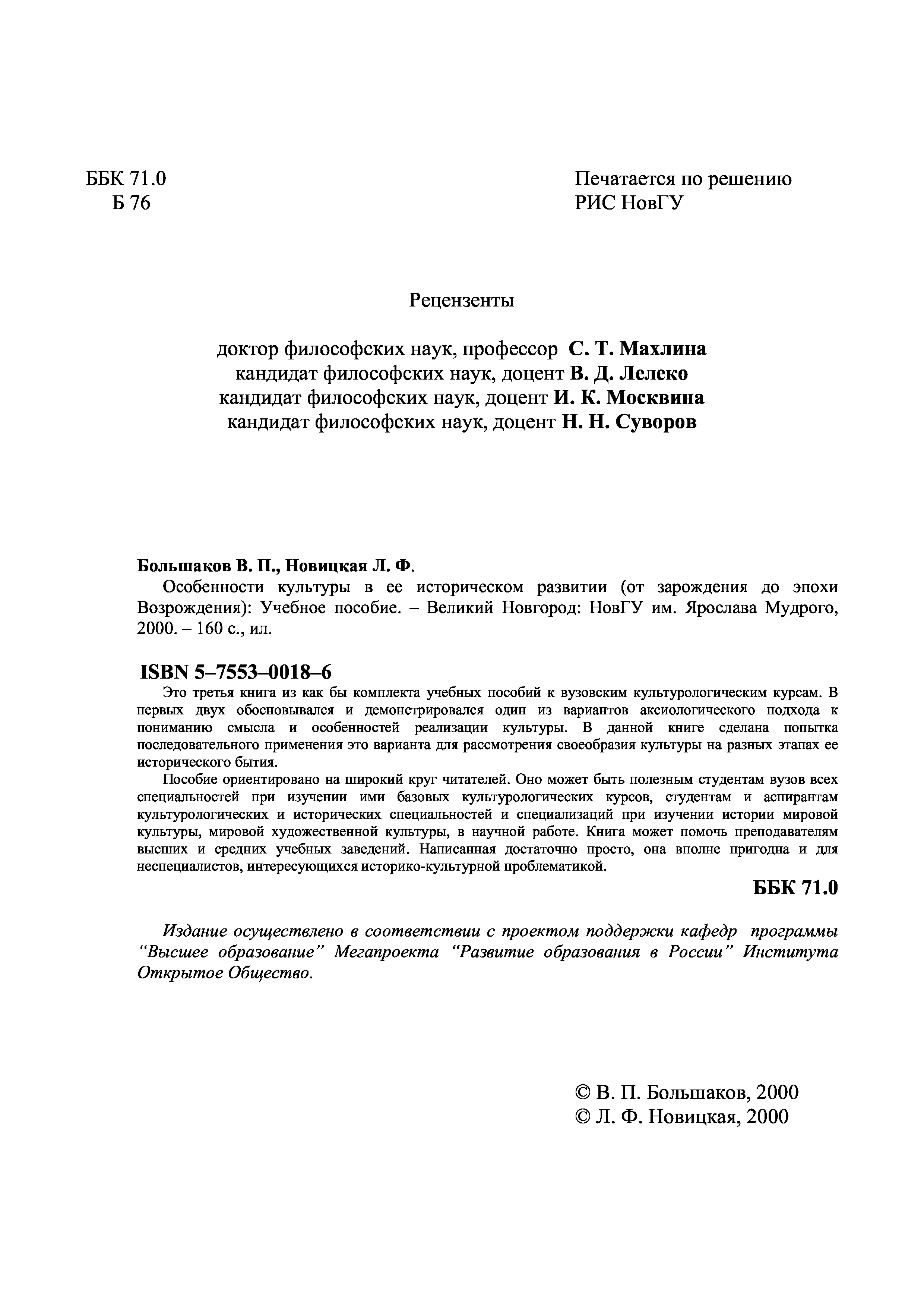 "Особенности культуры в ее историческом развитии (от зарождения до эпохи Возрождения): Учебное пособие" - читать интересную книгу автора (Большаков В.П., Новицкая Л.Ф.)