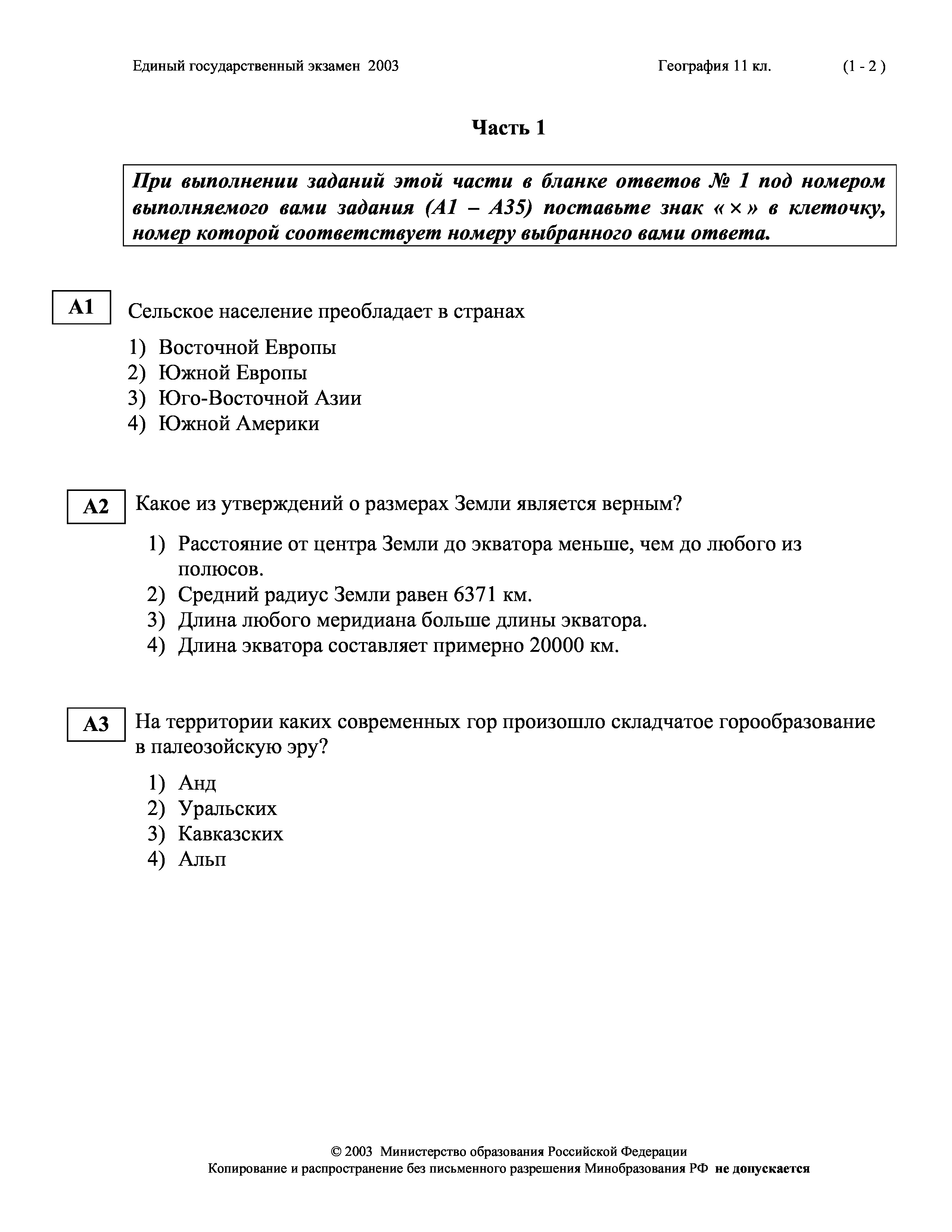 "Демонстрационный вариант ЕГЭ 2003 г. География" - читать интересную книгу автора