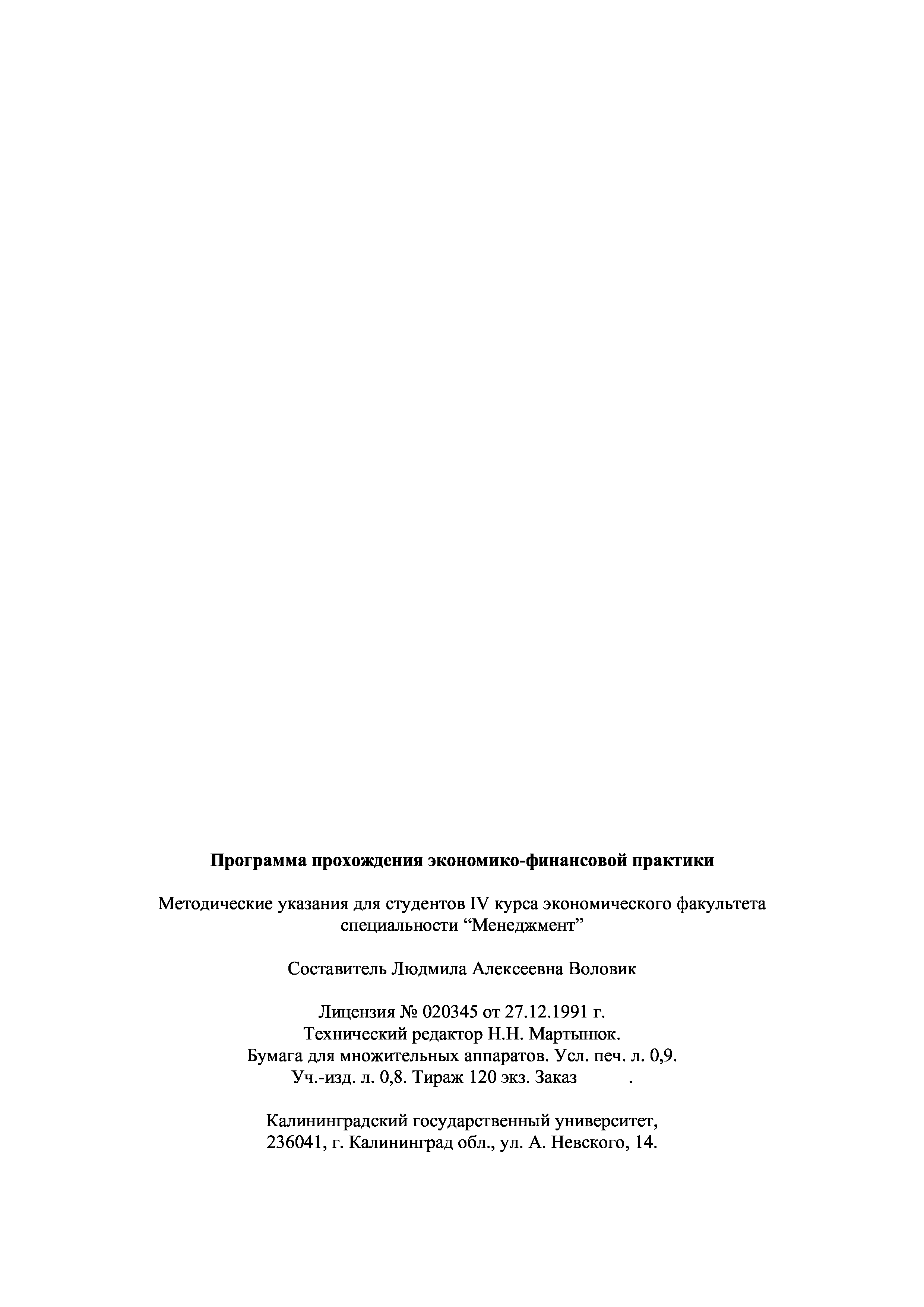"Программа прохождения экономико-финансовой практики. Методические указания для студентов IV курса экономического факультета специальности ''Менеджмент'' " - читать интересную книгу автора