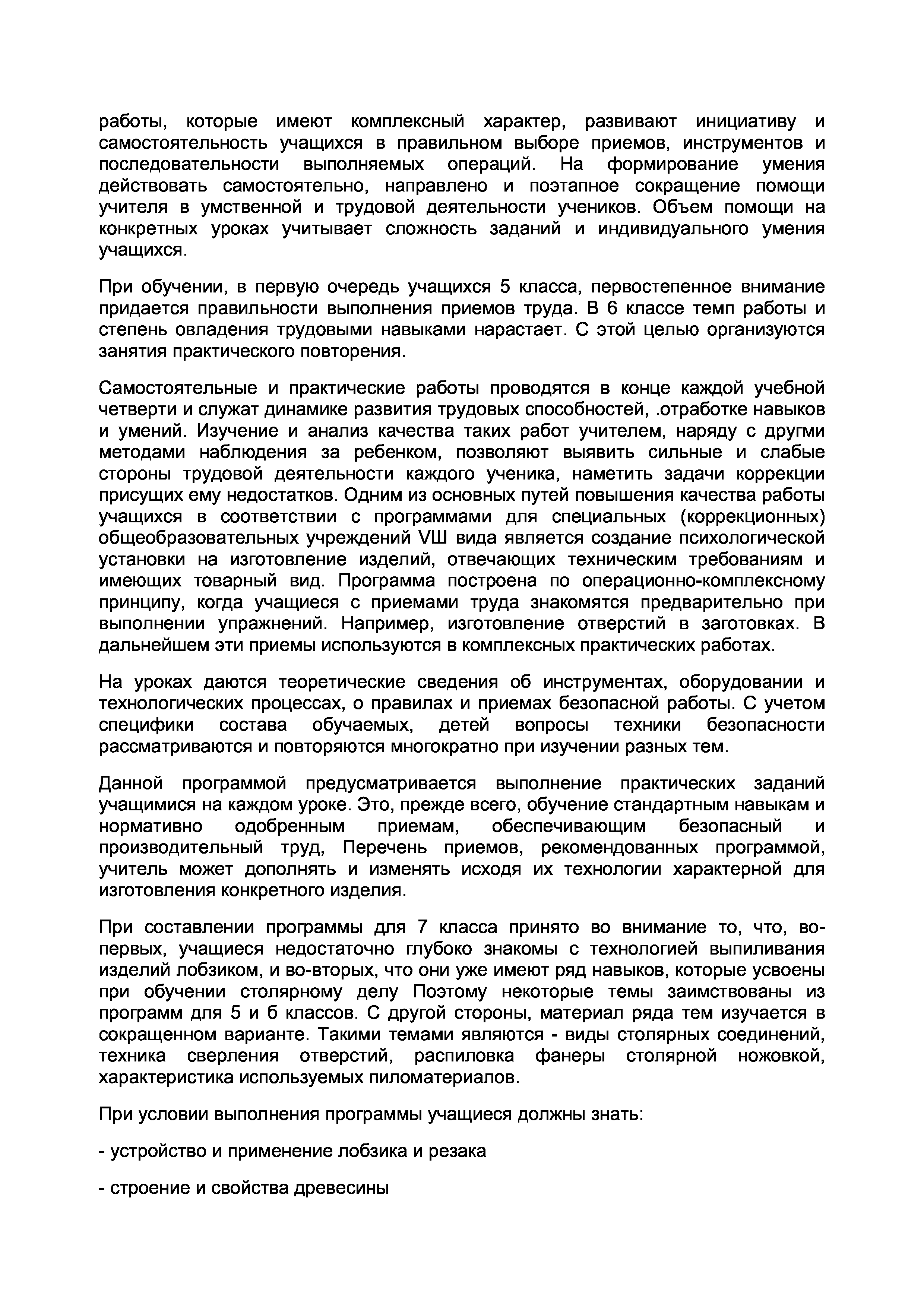 "Выпиливание лобзиком и резьба по дереву: Программа курса трудового обучения для 5-7 классов специальных (коррекционных) школ VIII вида" - читать интересную книгу автора