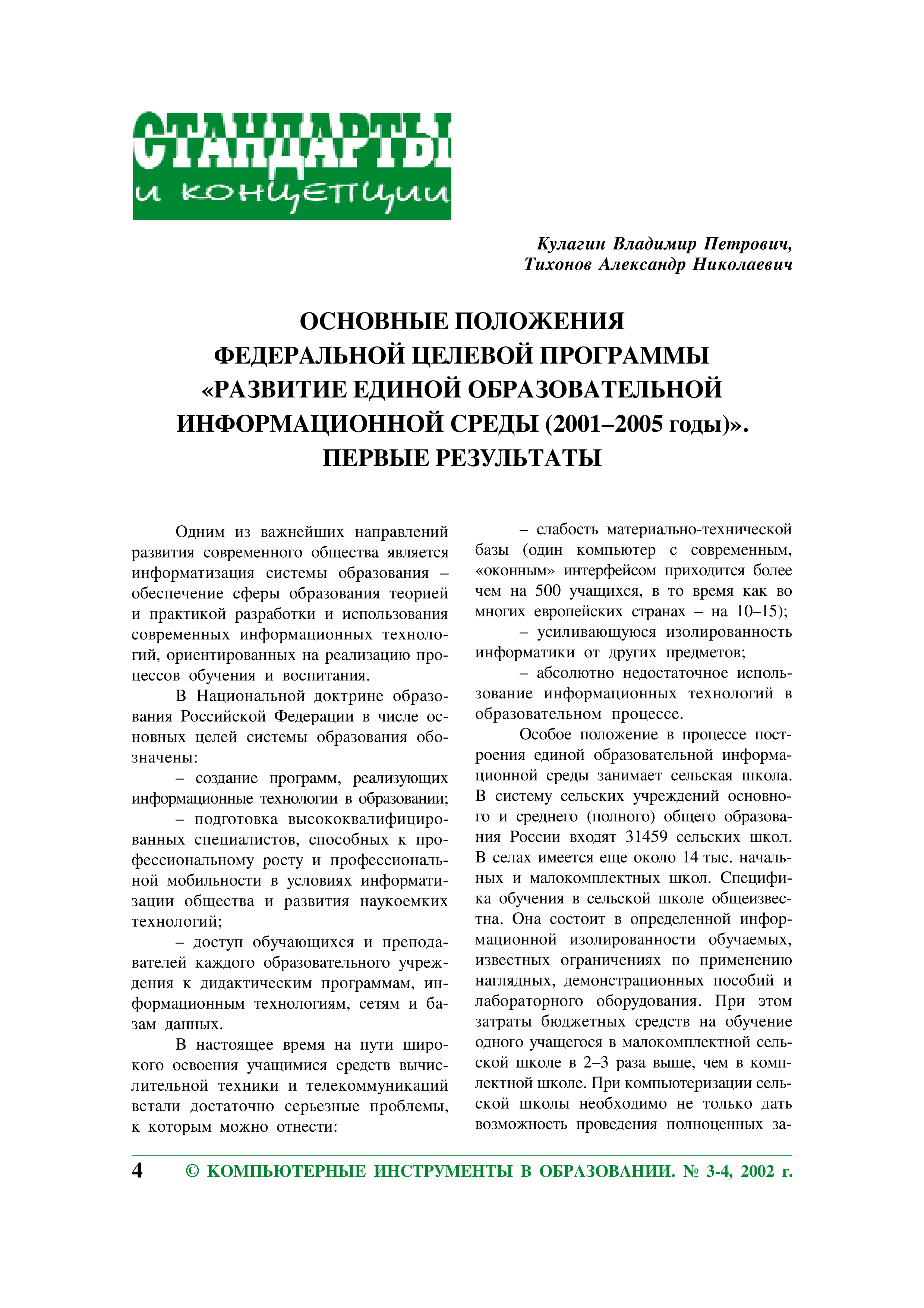 "Основные положения федеральной целевой программы ''Развитие единой образовательной информационной среды (2001-2005 годы)''. Первые результаты" - читать интересную книгу автора (Кулагин В.П., Тихонов А.Н.)