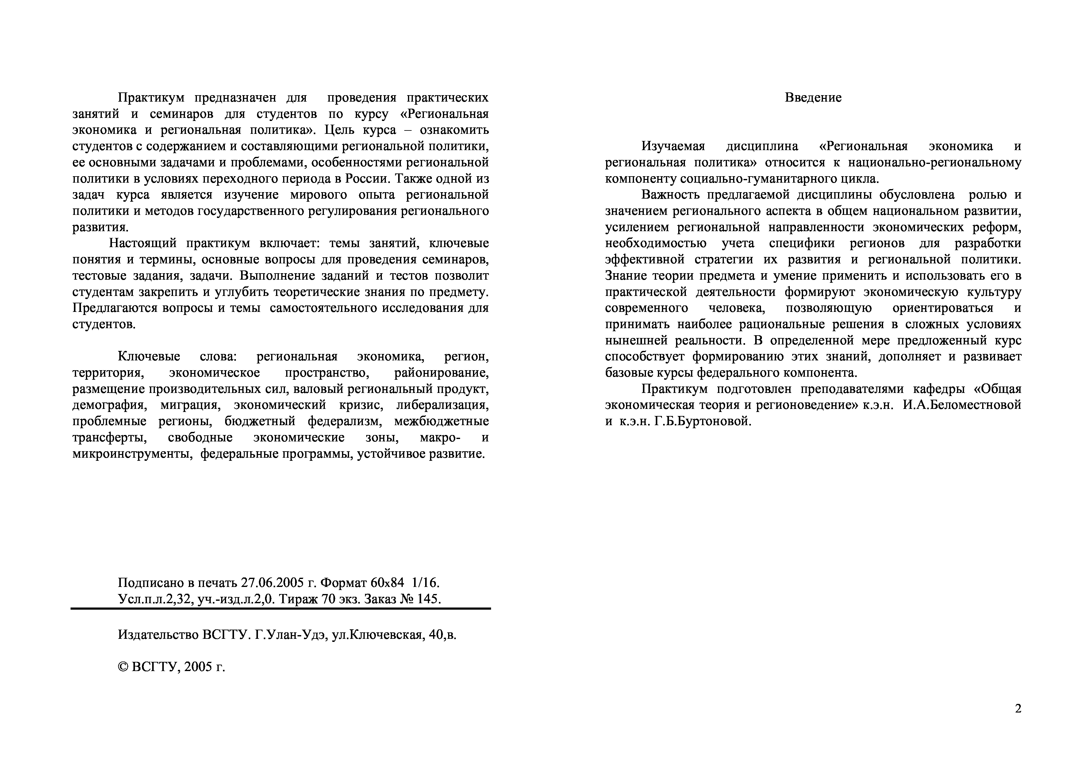 "Практикум по дисциплине ''Региональная экономика и региональная политика'' для студентов специальности 032301 - ''Регионоведение''" - читать интересную книгу автора