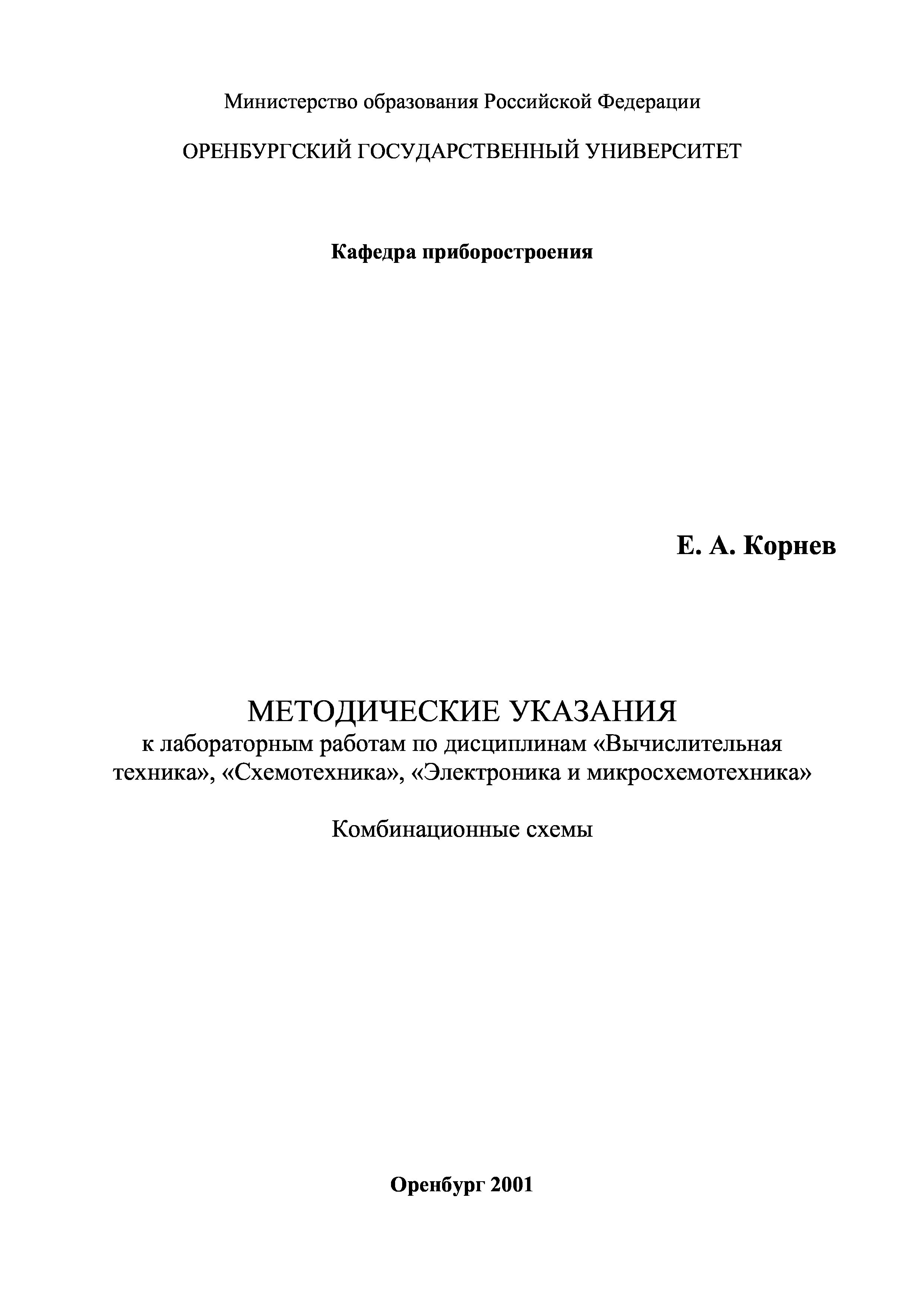 "Комбинационные схемы: Методические указания к лабораторным работам по дисциплинам ''Вычислительная техника'', ''Схемотехника'', ''Электроника и микросхемотехника''" - читать интересную книгу автора (Корнев Е.А.)