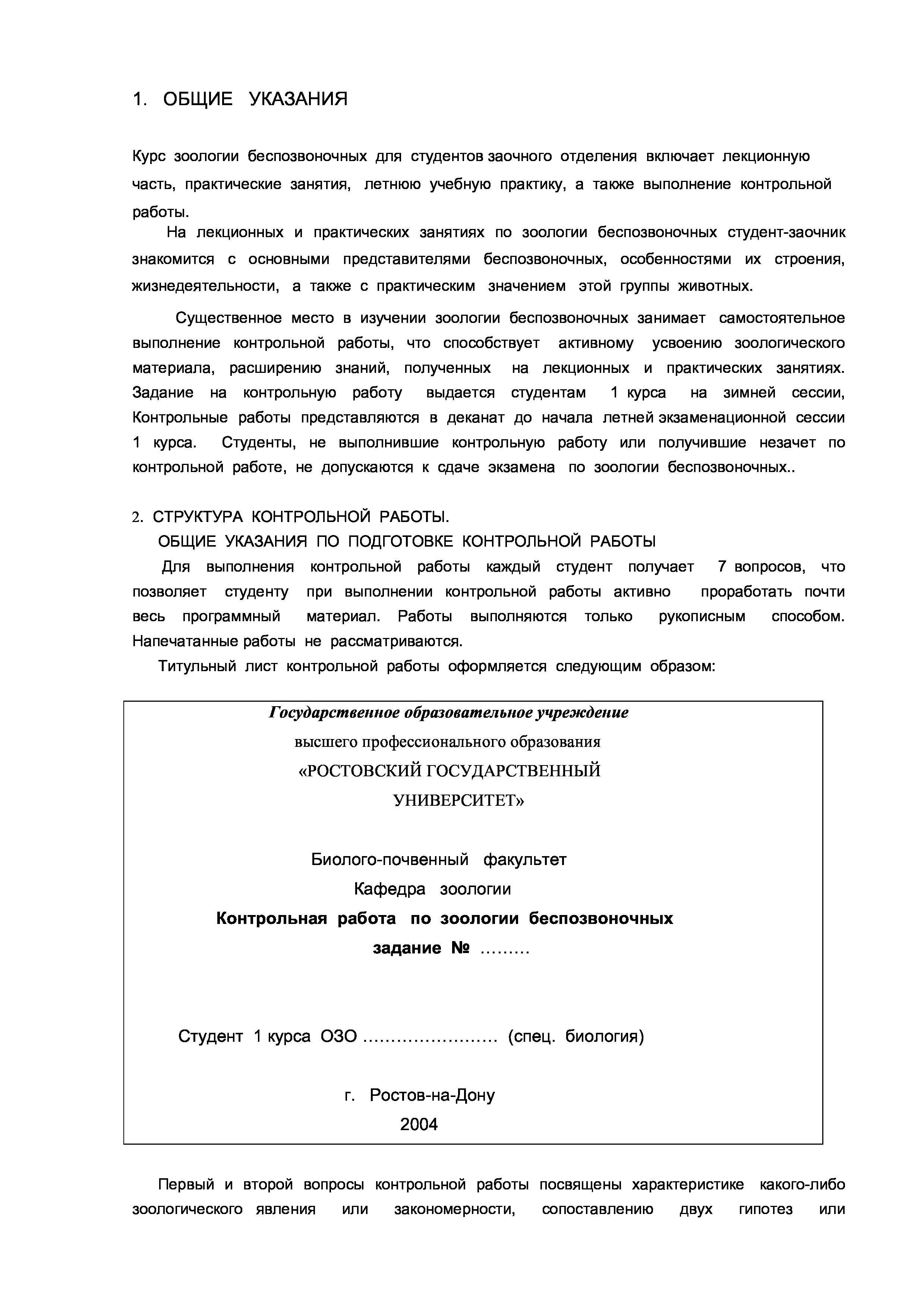 "Контрольные задания по зоологии беспозвоночных для студентов специальности биоэкология" - читать интересную книгу автора
