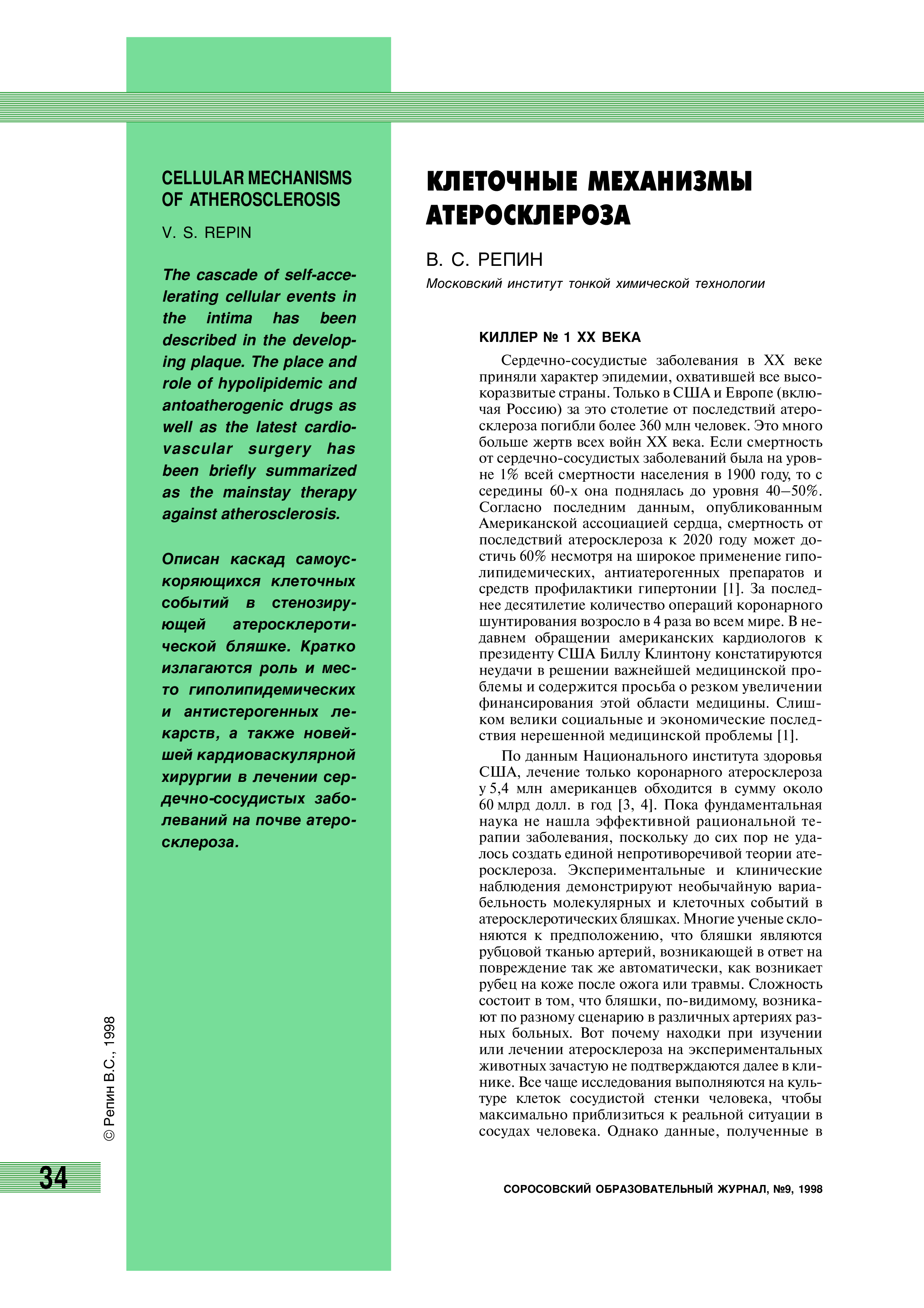 "Клеточные механизмы атеросклероза" - читать интересную книгу автора (Репин В.С.)