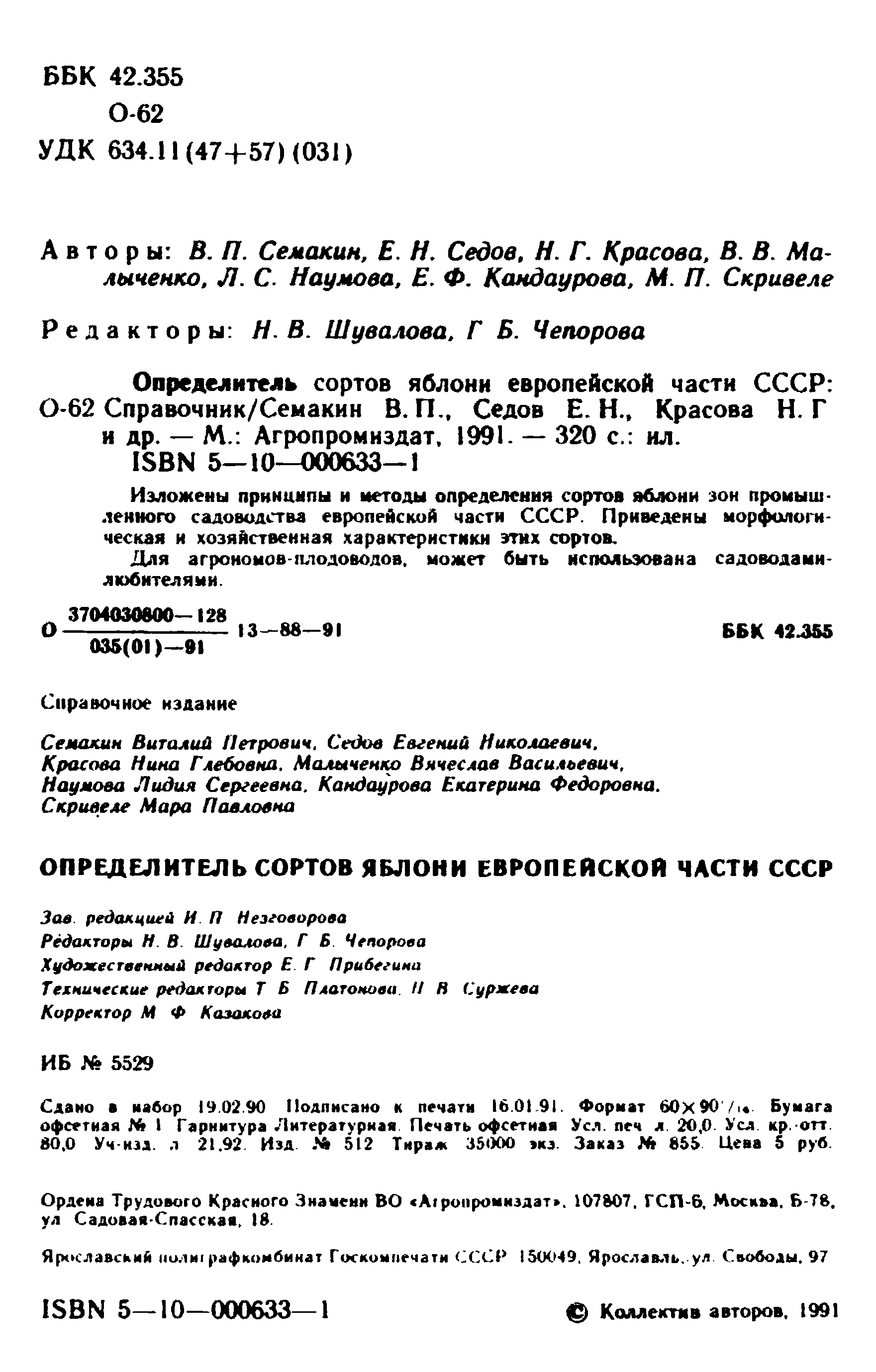 "Определитель сортов яблони Европейской части СССР: Справочник." - читать интересную книгу автора