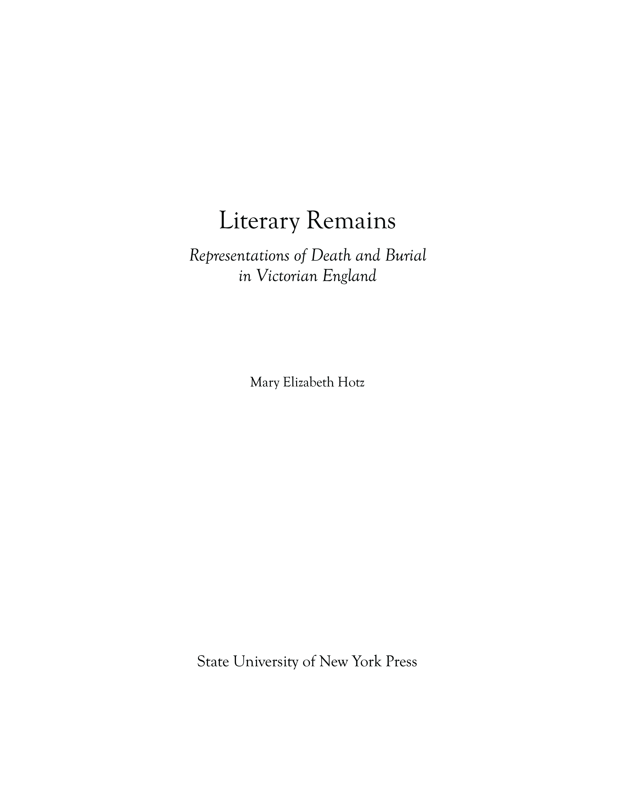 "Literary Remains: Representations of Death and Burial in Victorian England " - читать интересную книгу автора (Mary Elizabeth Hotz)