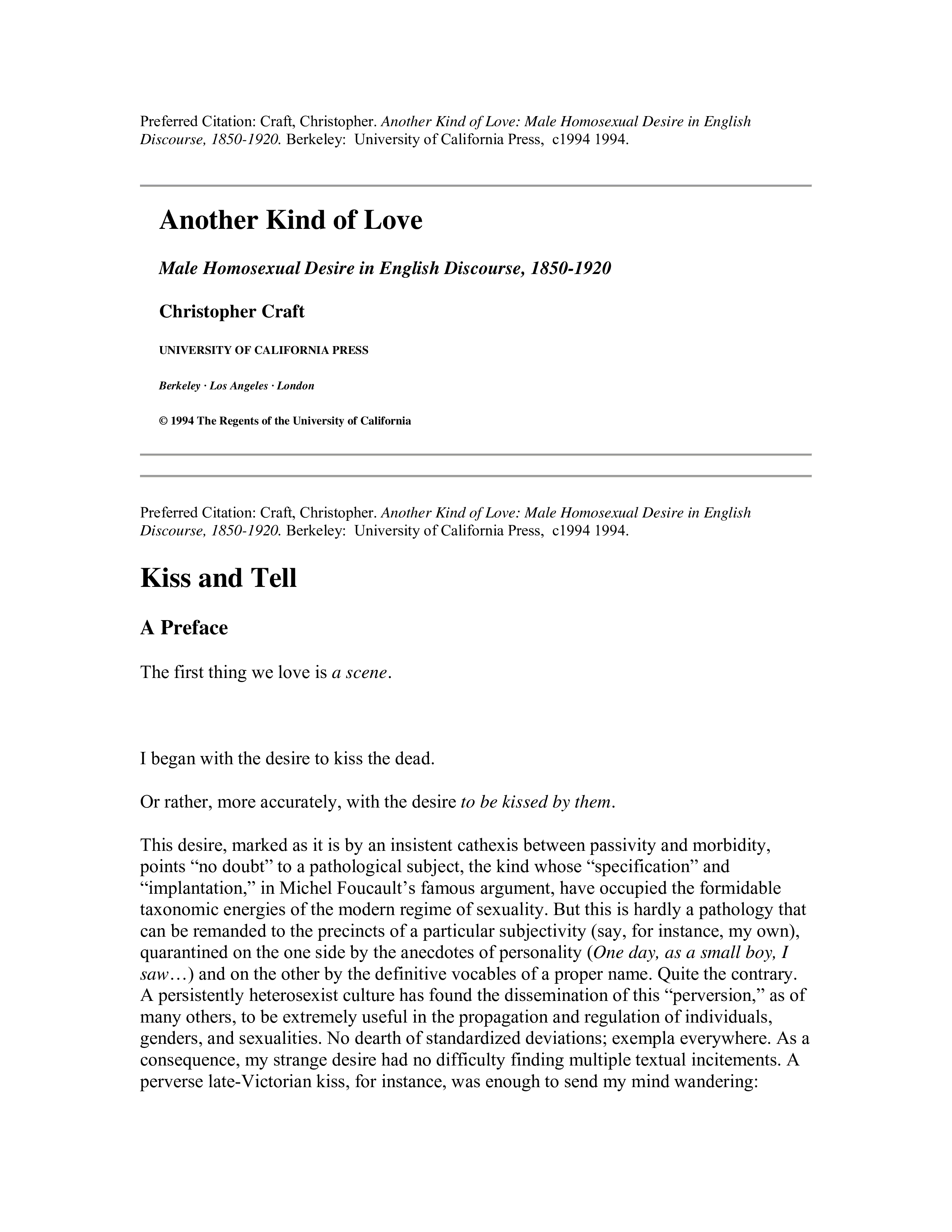 "Another Kind of Love: Male Homosexual Desire in English Discourse, 1850-1920 " - читать интересную книгу автора (Christopher Craft)