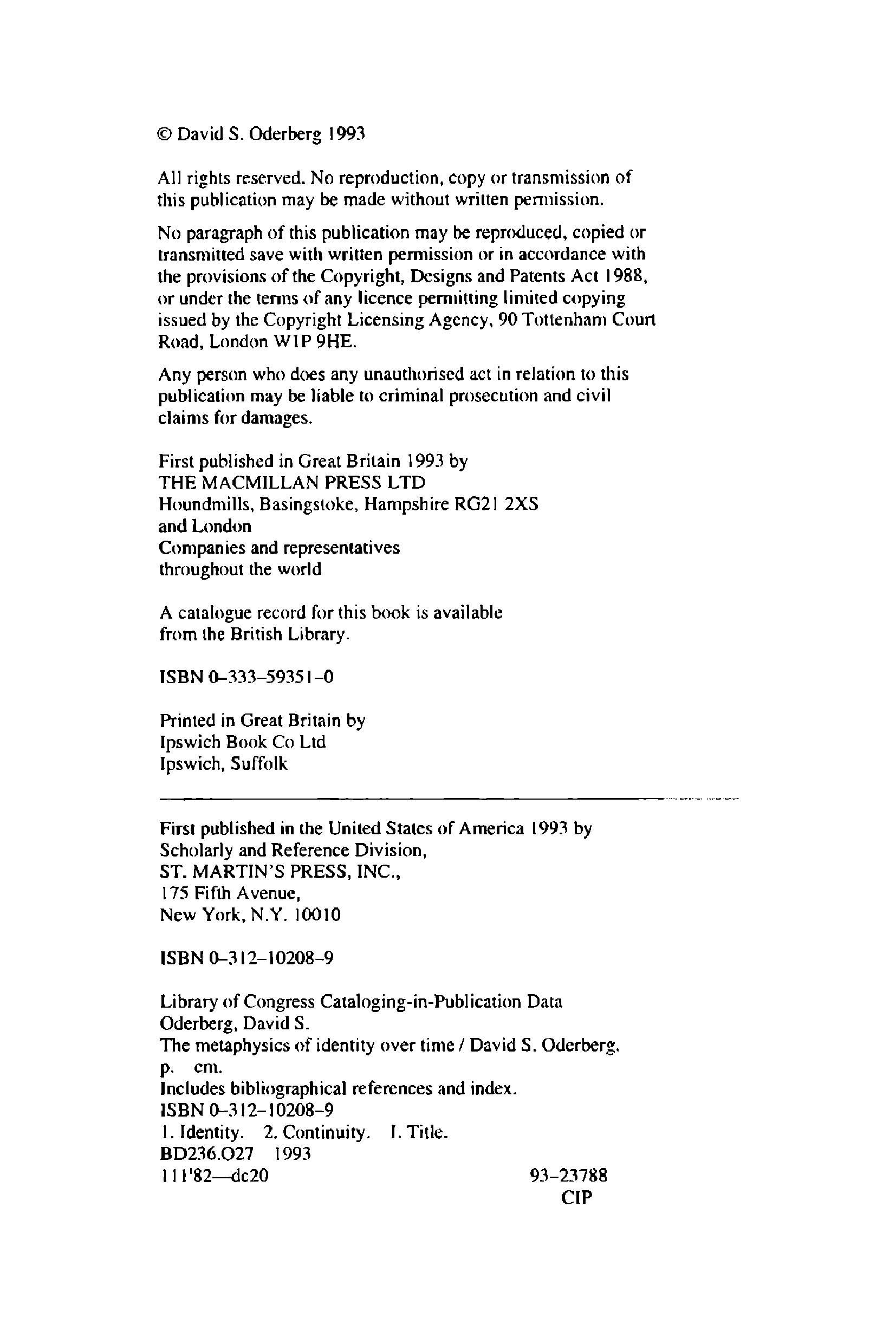 "The Metaphysics of Identity over Time" - читать интересную книгу автора