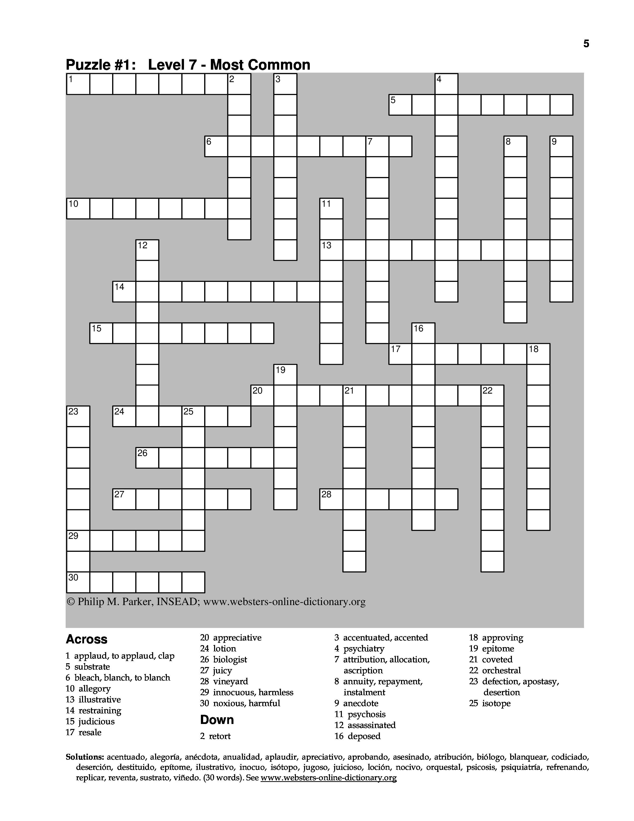 "Webster's English to Spanish Crossword Puzzles: Level 7" - читать интересную книгу автора (Philip M. Parker)