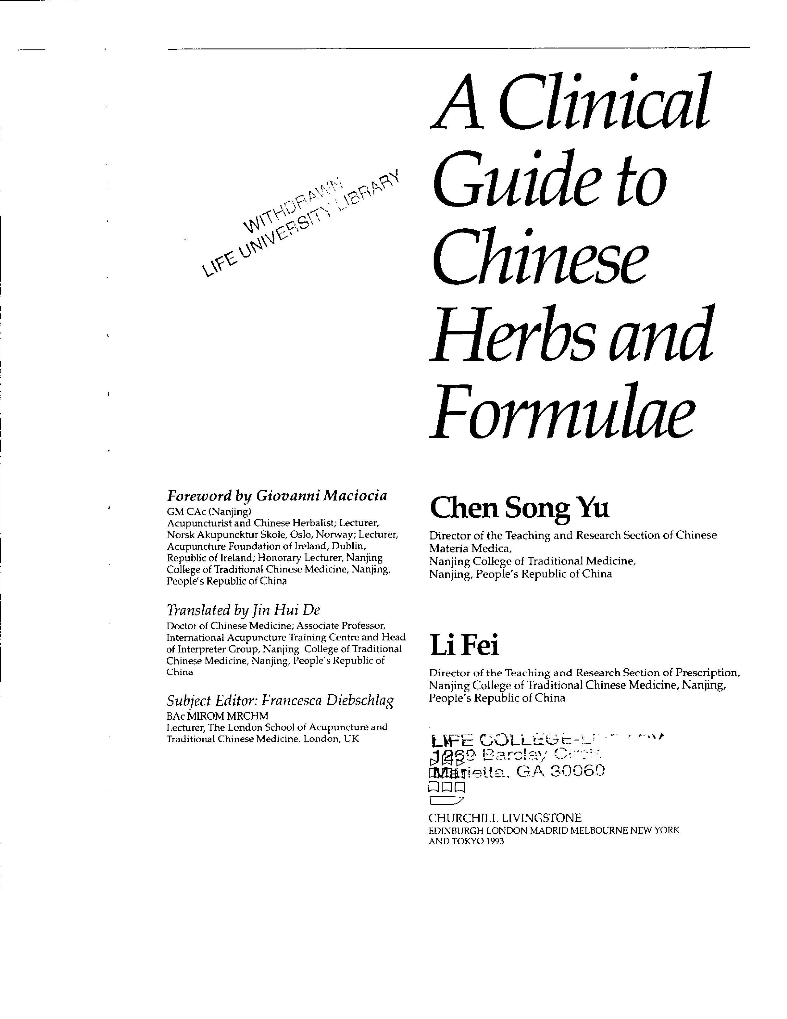 "A Clinical Guide to Chinese Herbs and Formulae" - читать интересную книгу автора (C. Song Yu, L. Fei)