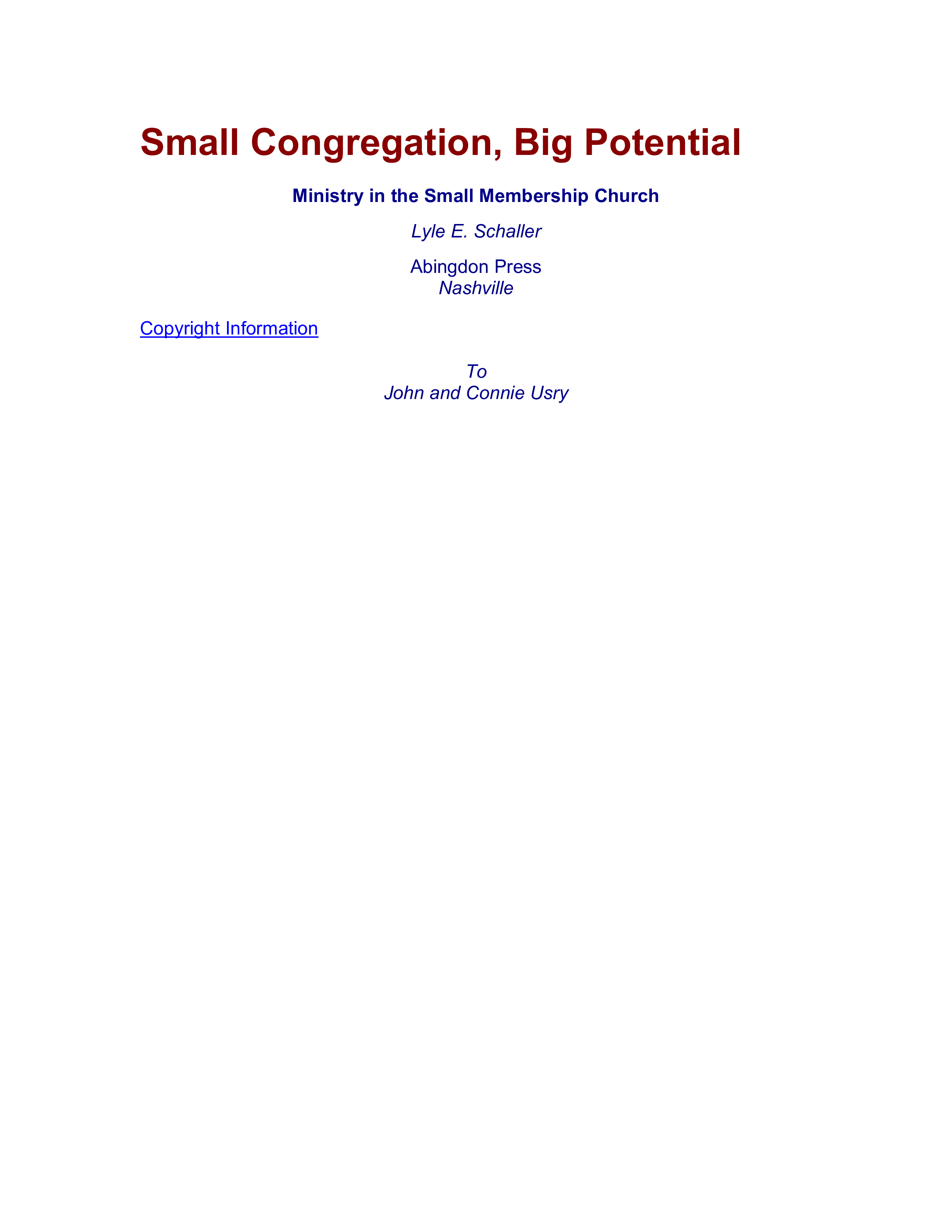 "Small Congregation, Big Potential: Ministry in the Small Membership Church" - читать интересную книгу автора