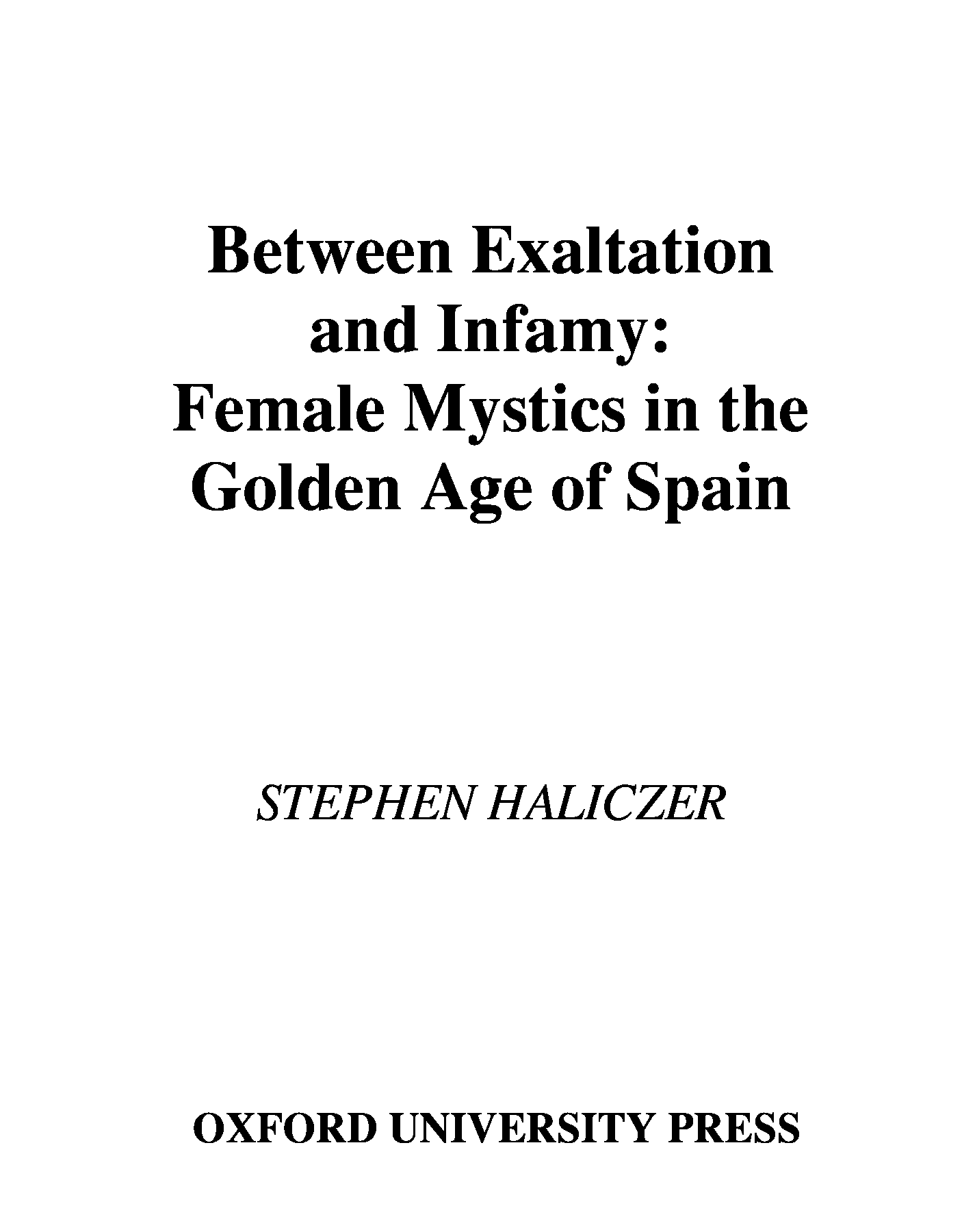 "Between Exaltation and Infamy: Female Mystics in the Golden Age of Spain" - читать интересную книгу автора