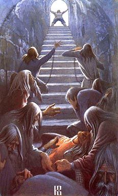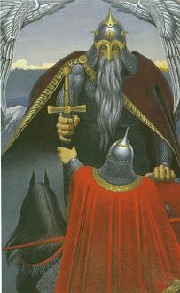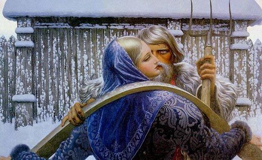 На картине художника валькирия, подобно видению, спускается на воздушном белом коне сквозь густые свинцовые тучи к Зигфриду и активно сопротивляется гибели героя. Движением руки она стремится поднять его и возвратить к подвигам. Васильев внутренне не соглашается с вагнеровской трактовкой гибели лучшего из героев, не приносящей никому избавления, окутывающей пессимизмом финал величайшей музыкальной драмы. Художник создает не столько иллюстрации к музыкальной драме Вагнера, сколько собственные произведения, которые согревают и жгут сердца зрителей. Когда полотно «Валькирия над сраженным Зигфридом» близилось к завершению, Константин назначил товарищам день торжественного открытия картины. Прочно став на позиции реализма, он пришел к убеждению, что, утверждая в творчестве сильное и героическое начало, надо стремиться к возвышению и собственного духа. Поэтому каждое открытие картины старался теперь превратить в торжество, которое могло бы послужить искрой для костра будущих творений его товарищей. Приходили в такие дни, как правило, самые близкие друзья: Шорников, Пронин, Кузнецов, иногда Юрий Михалкин, Лорэнс Блинов, позднее Николай Травин. Шорникову поручалось при открытии картин выступать со своими стихами. На этот раз Олег работал по просьбе Константина над темой «Викинги». В назначенный час все собрались у Васильева. Он пригласил их в чисто убранный зал, где в центре, на подрамнике, стояла картина, закрытая холстом. Первым, как и было предусмотрено программой, выступил Олег со своей интересной поэмой, созданной по скандинавским источникам. Когда он закончил читать, Константин, в сомнении подойдя к холсту, сказал: – Да, поэма, пожалуй, лучше моей работы. Не знаю, открывать ли… Зря, конечно, он колебался. Наверное, хотел сделать комплимент другу, воодушевить его… Картина произвела на юношей сильное впечатление. Потом слушали музыку: Васильев сам выбирал и ставил какую-нибудь соответствующую общему настрою пластинку. Обсуждали услышанное, переходили к другим темам, ко всему важному, по их мнению. По домам расходились в приподнятом настроении далеко за полночь. Но не только на открытии картин, а и на своих днях рождения Константин, словно опытный штурман, никогда не позволял своему экипажу плыть по произволу волн. Задача в конце концов ставилась такая: непременно должен быть духовный рост. В один из Костиных дней рождений Шорников прочитал стихотворение: Стихотворение отвечало тому духу, тем увлечениям, которые связывали друзей. Старец с красной бородой символизировал язычника. В древних хрониках друзья находили описания славян и россов, которых, как правило, представляли рыжими. Об этом говорил, в частности, арабский путешественник Альмаджик, чья хроника попала в руки друзей. Васильев и его товарищи увлеченно вели поиск архивных документов, собирали не только былины, но и народные предания, все глубже проникая в отечественную мифологию. Особым увлечением друзей стало их пристрастие к русской народной песне. Они выписывали, тщательно собирали пластинки с записями народных хоров: Воронежского, Омского, Северного, имени Пятницкого. Слушая эту музыку, юноши не раз испытывали на себе какое-то очищающее воздействие печальных русских песен и очень дорожили этим приобщением к духовному началу своего народа. Сам Констант