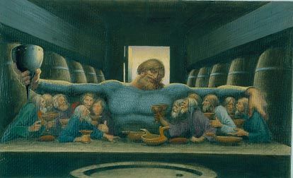 В картине «Илья Муромец и голи кабацкие» Васильев как бы переносит себя вместе с друзьями на много веков в прошлое, в те давние времена, когда сильные «храбры» после тяжких сражений садились наконец за стол дубовый, чтобы отведать медовой браги, сытно поесть да порассказать людям о делах ратных. Используя фабулу былины, художник смело отождествляет себя о гигантом-богатырем, раскинувшим руки и объявшим ими всю «голь кабацкую». В лицах простых мужиков, тесно прижавшихся друг к другу, чтобы попасть в объятия богатыря, легко угадываются черты его ближайших друзей: Олега Шорникова, Анатолия Кузнецова, Геннадия Пронина. В руке у великана его гигантский шлем, наполненный вином, им можно, кажется, напоить весь белый свет. Открытое улыбчивое лицо воина словно предлагает: «Вот он весь я перед вами. Всем, что имею, – готов поделиться. Берите от щедрот моих»…