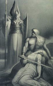 И, наконец, четвертая работа показывает кульминационный момент боя, когда отец, предавший своего сына, вырывает из рук его близкую победу. В гневе Вотан направляет копье на Зигмунда, и тотчас всплеск молнии вдребезги разбивает непобедимый меч героя. В бешеном злорадстве Хундинг протыкает Зигмунда огромным копьем. Сквозь мрачные облака печально созерцает события валькирия Брунгильда.