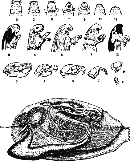 Еще одно следствие, вытекающее из четырех наших аксиом: конвергентными могут быть только признаки, части структур, но не целые структуры, а тем более не сами организмы. Много пишут об удивительном конвергентном сходстве глаза человека и осьминога. Внешне они действительно похожи, вплоть до выражения. Но принципы действия совершенно различны. Глаз осьминога, как объектив фотоаппарата, «наводится на фокус» приближением или удалением к сетчатке. У человека фокусное расстояние регулируется изменением кривизны самого хрусталика (представьте оптический прибор с эластичной линзой, фокусное расстояние которой изменяется, например, при накачке в линзу жидкости, сильно преломляющей свет; насколько я знаю, подобный принцип в технике не был использован). Сумчатый крот, обитающий в Австралии, удивительно похож на нашего крота, но у него имеется сумка для вынашивания детенышей и задние концы нижней челюсти, как у всех сумчатых, загнуты внутрь. Это вполне понятно: отбор приводит к конвергентному сходству по признакам, которые полезны в конкретных условиях (например, к подземному образу жизни), но оставляет те, которые могут быть разными без нарушения их функций. Поэтому на Земле нет двух видов с одинаковыми генетическими программами.
