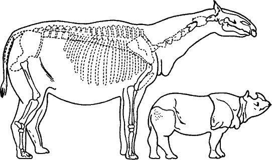 Иногда же ответов несколько, причем они отнюдь не равноценны. Вот хороший пример. Представьте разреженный лес или саванну, где трава выжигается солнцем. У крупных копытных в этой зоне есть хороший источник питания – листва деревьев. Но как до нее добраться? Самый прямой ответ – отбор на увеличение размеров тела. По этому пути пошли гигантские безрогие носороги олигоцена – индрикотерии. Нельзя сказать, чтобы решение было удачным. Ведь если рост увеличивается, то вес также возрастает пропорционально третьей степени роста. Размеры возросли вдвое, а расходы на питание – в восемь раз.