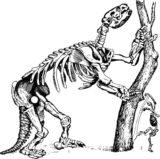 Другие животные вставали на задние ноги, а передними (нередко с мощными загнутыми когтями) подгибали ветки с листьями и плодами. Так вели себя, очевидно, халикотерии, о которых уже упоминалось. Предел этой тенденции – гигантские ленивцы, мегатерии, вымершие в Южной Америке сравнительно недавно, может быть, не без содействия человека.